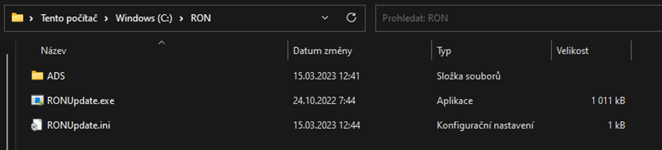 Následně pro spouštění aplikace využijte aplikaci RONUpdate.exe. Pokud je na serveru nová verze, nejprve se stáhne a následně se spustí z lokálního umístění.
