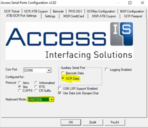 5. Upravte konfiguraci čtečky dle obrázku níže.