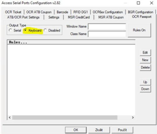 5. Upravte konfiguraci čtečky dle obrázku níže.